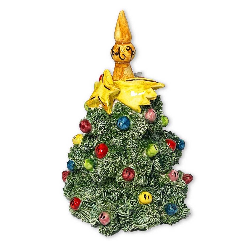 Entra nel magico mondo del Natale con il nostro Albero di Natale verde in Ceramica di Caltagirone. Questo piccolo albero, alto 15 cm, è una celebrazione dell’atmosfera natalizia unica e della tradizione artigianale siciliana. Ogni dettaglio è stato creato con amore e dedizione, rendendo questo albero un simbolo di festa e gioia.