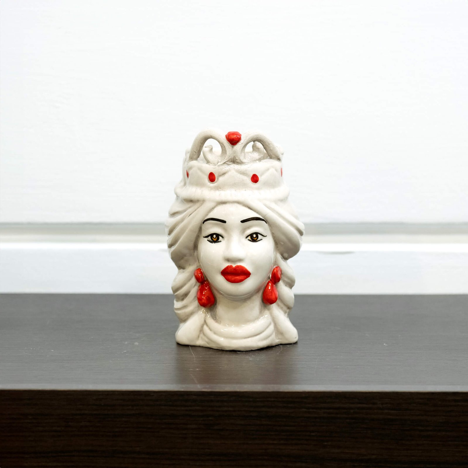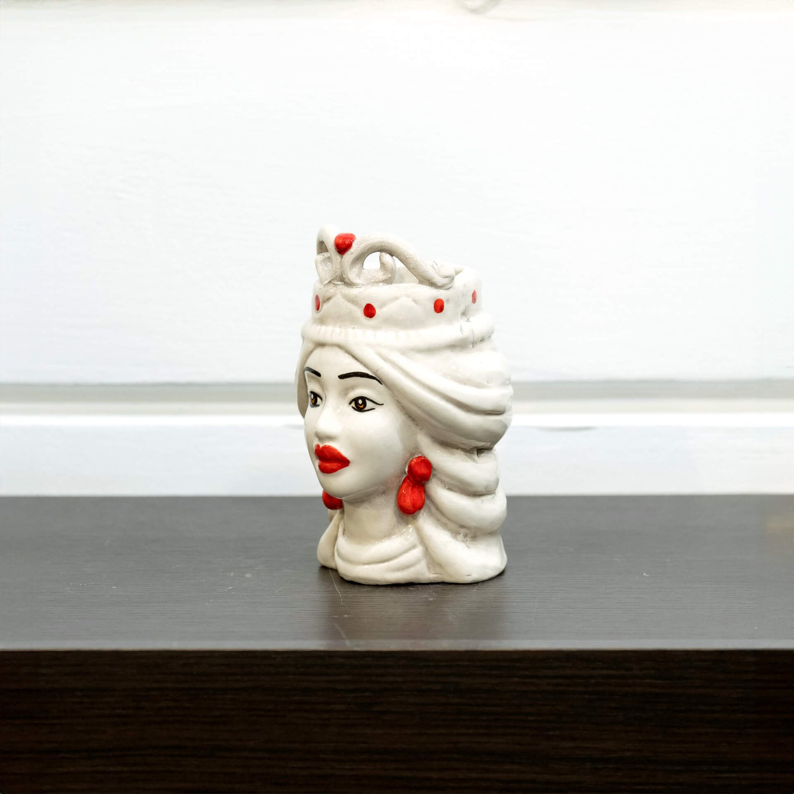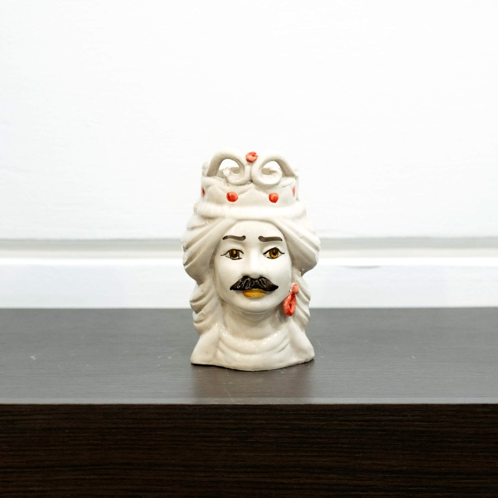 testa di moro monocolore in ceramica di Caltagirone modellate e decorate a mano; per uno stile classico e tradizionale, legato alla storia della sicilia, a quello più attuale dedicato all’interior design moderno.