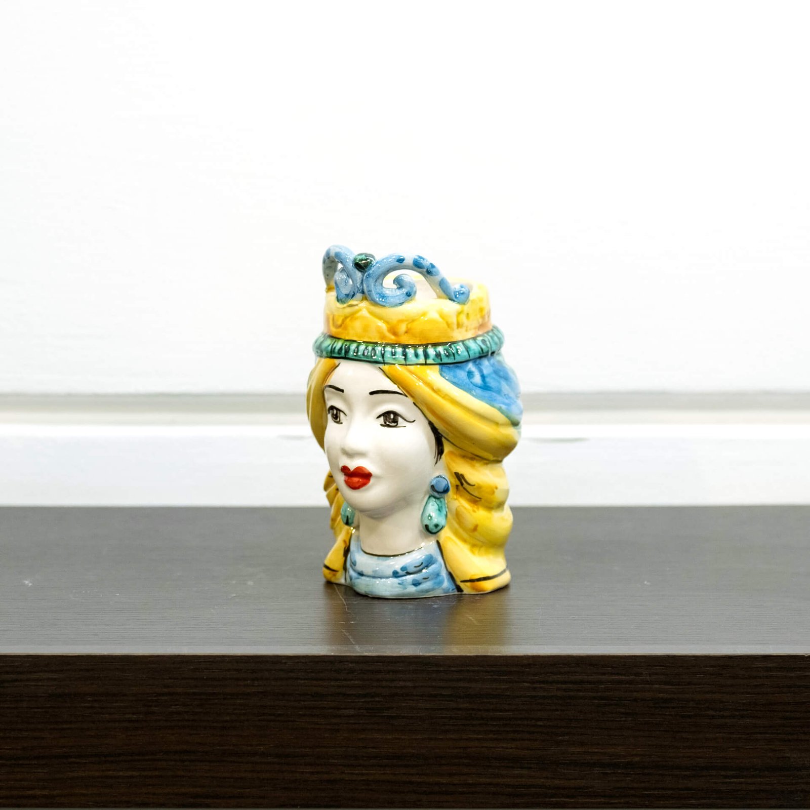 coppia di teste di moro colorata in ceramica di Caltagirone modellate e decorate a mano; per uno stile classico e tradizionale, legato alla storia della sicilia, a quello più attuale dedicato all’interior design moderno.