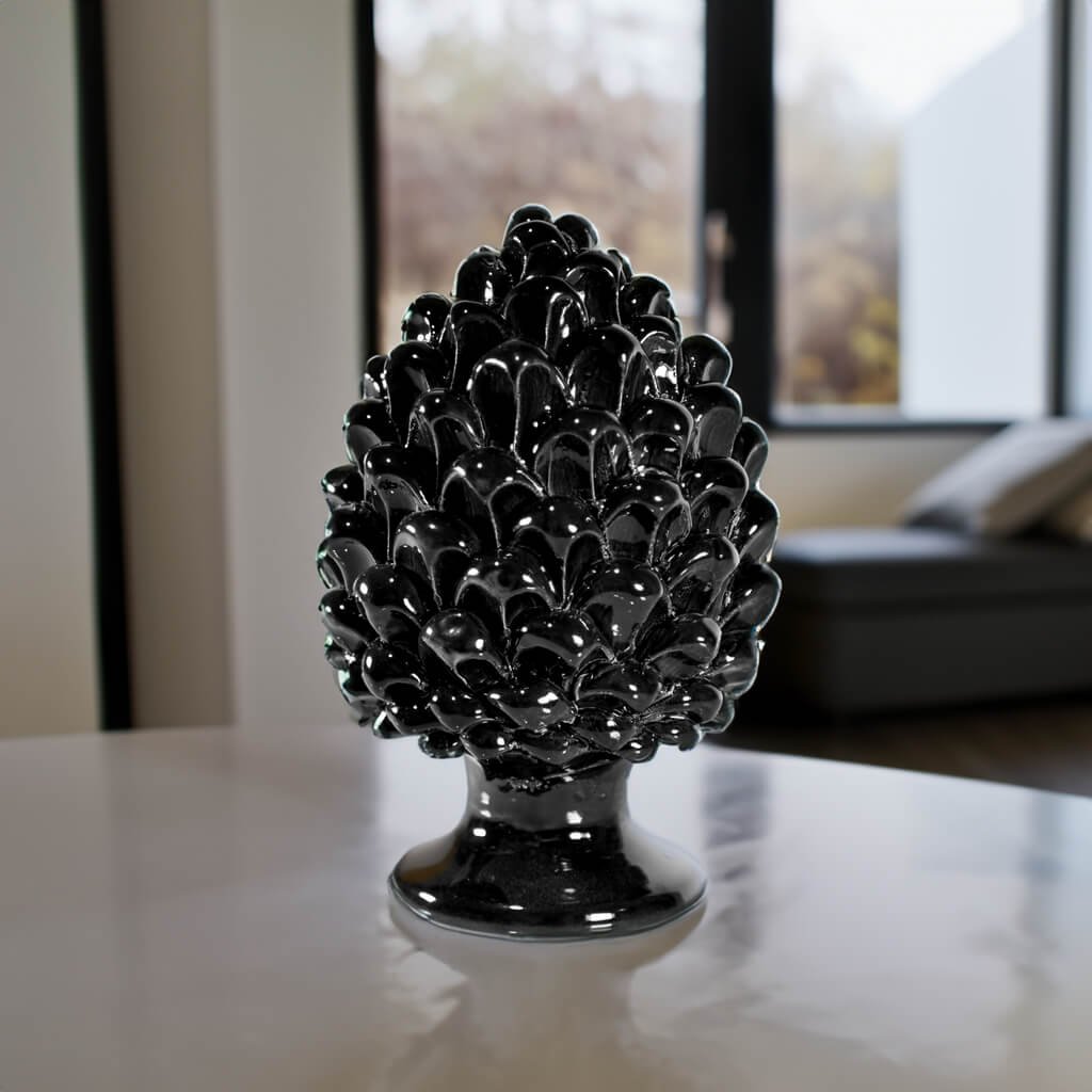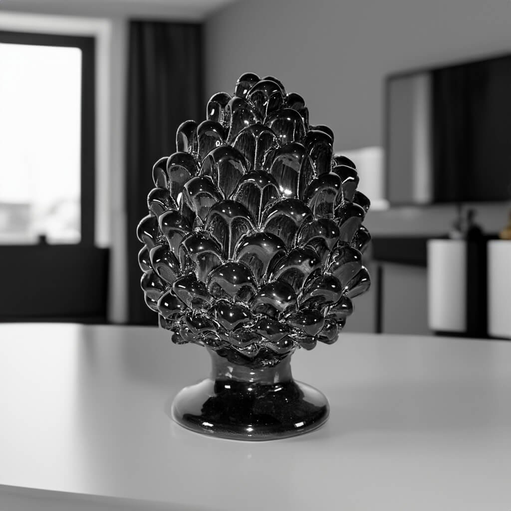 La Pigna nera in Ceramica di Caltagirone è un capolavoro realizzato interamente a mano con precisione artigianale. Ogni singolo dettaglio di questa creazione è plasmato con grande cura e passione dagli esperti artigiani di Caltagirone. Questa pigna è un’opera d’arte unica in cui il talento e la dedizione si fondono per creare un oggetto di straordinaria bellezza.