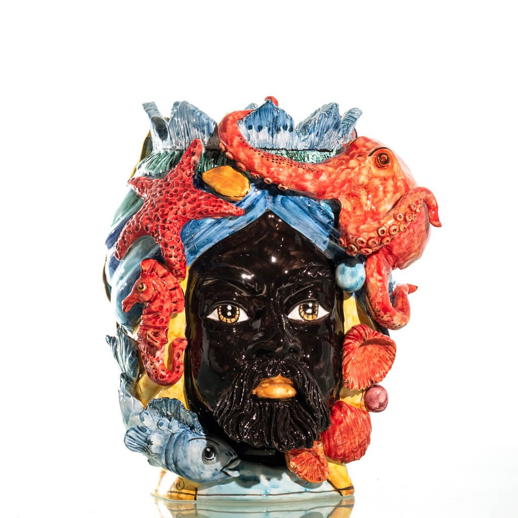 La nostra Testa di Moro Mare è molto più di un’opera d’arte – è un’esperienza che ti porta al cuore del mare. Questo pezzo, unico e in serie limitata, è arricchito da applicazioni marine in ceramica di Caltagirone, catturando la bellezza e la potenza del mare. Scopri come questa scultura unisce la tradizione artigianale alla magnificenza del mare.