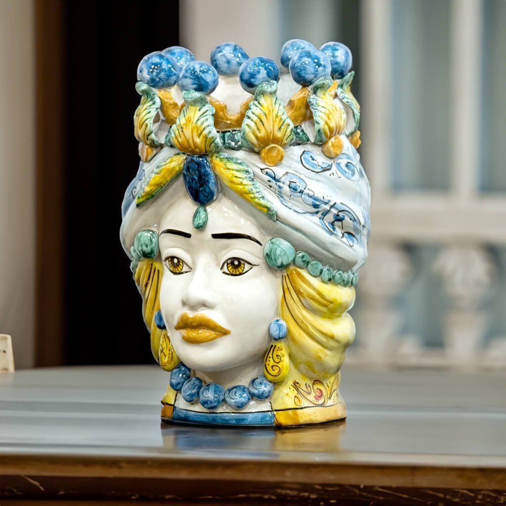 Teste di Moro in ceramica di Caltagirone modellate e decorate a mano; per uno stile classico e tradizionale, legato alla storia della sicilia, a quello più attuale dedicato all’interior design moderno.